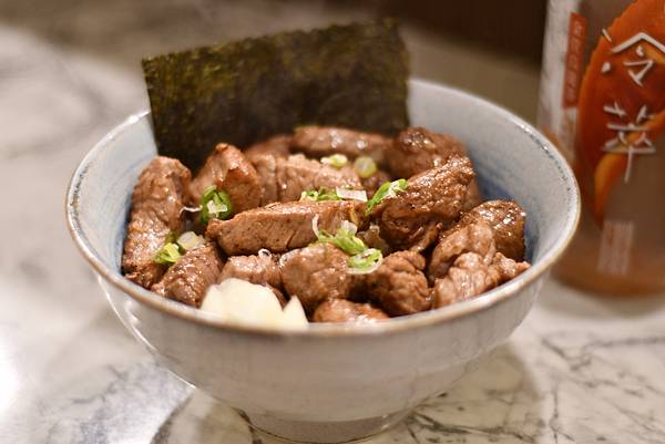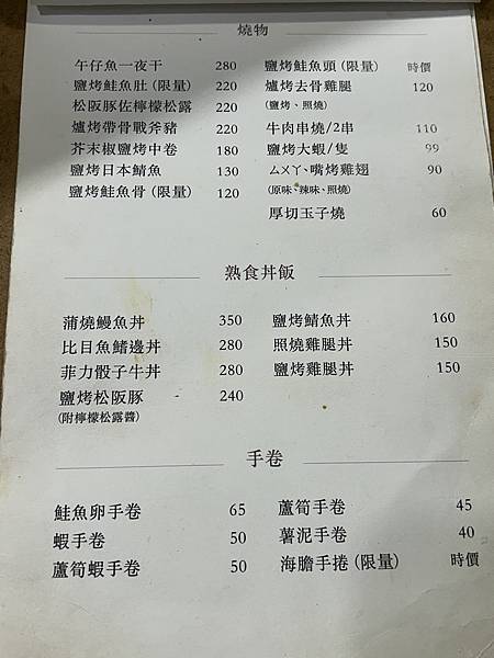 來看看菜單囉,這裡的低消是一人兩百元,或者點一份丼飯也可以。菜單選擇相當豐富,有生魚片、生魚丼飯,也有很多燒烤類可以選,不吃生魚片的朋友也有熟食丼飯喔。我覺得樸拾的價位真的蠻合理的,而且餐點都是現點現做,雖然需要一點等待時間,但每一道上桌都色香味俱全,絕對值得。首先推薦「和風海鮮沙拉」,這份沙拉大約一人份,裡面有洋蔥、生菜、番茄和蝦子,這樣一份才四十五元,真是便宜又划算。沙拉上灑了柴魚,淋上和風沙拉醬,是我很喜歡的味道,吃起來清爽開胃。接著必點「菲力骰子牛丼」,上面鋪滿了滿滿的骰子牛,旁邊還有海苔和蘿蔔泡菜來增加風味。骰子牛又香又嫩,米飯沾著牛肉香氣和醬汁一起吃,真的非常美味。