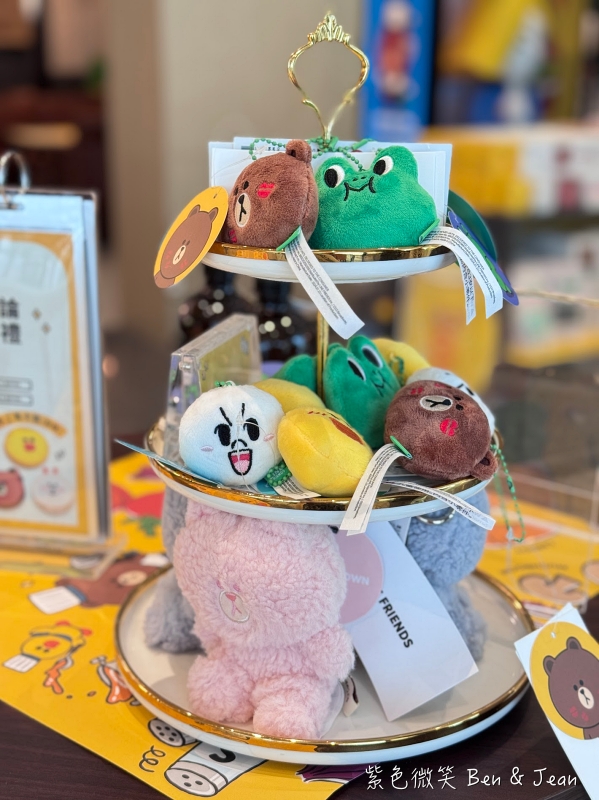這裡的菜單設計就非常引人入勝,早餐特色同樣充滿了LINE FRIENDS的可愛元素,讓您愛不釋口,早餐的每個品項都會融入LINE FRIENDS的造型,真的太萌太可愛了,像是馬卡龍也是早餐包含的選項,另外也有咖啡與茶飲,早餐內容非常豐富,全日經典早餐則內有吐司、培根、起司炒蛋、香腸等等,煙燻三文魚鬆餅配班尼迪蛋上會有可愛的圖案,至少插上小圖的旗子就讓盤飾感加分不少,法式牛角包配雙蛋的蛋黃上會出現可愛的莎莉,這蛋黃也太莎莉了,還有火腿芝士法式牛角包也充滿巧思,這裡的茶品種類也很多元,有花果茶、英式早餐茶、伯爵紅茶、咖啡等等,另外餐廳內還設有LINE FRIENDS商品專區,販售超過數十款全球熱賣的官方正版周邊商品,真的非常精彩。