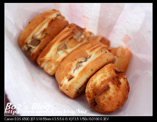 應該是不多人一次買到七個紅豆餅?所以老闆還附贈了顆烤焦的雞蛋糕,算是佛心來著。