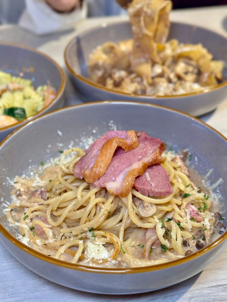 Otto Pasta麵體有滿多種類搭配!跟朋友分時很可以嘗鮮不同的麵體!麵條偏硬但又不會過硬,是煮的恰到好處軟硬適中的那種🔥朋友們吃都覺得很喜歡,點了四份餐點都無雷!還超級好吃~味道濃郁不會有醬跟麵分開的感覺~