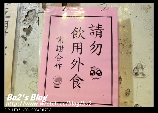 或許是有些人會習慣把夜市的食物帶進來吃,所以才有這勿飲用外食的標語。
