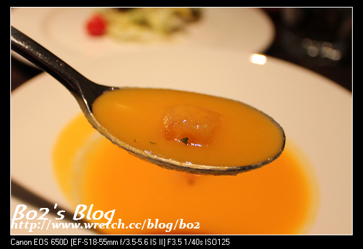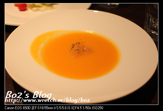 當天的特製湯品是南瓜濃湯,這湯就有點評價兩極。朋友覺得味道很醇,