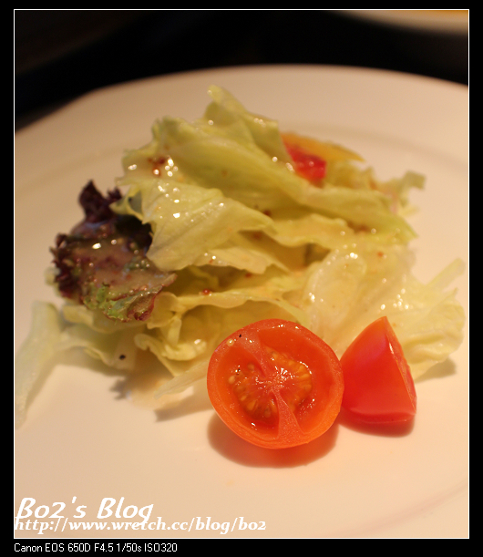 沙拉是油醋醬沙拉,微酸口感蠻清爽,可惜醬汁量不夠多,味道有點不夠就是。