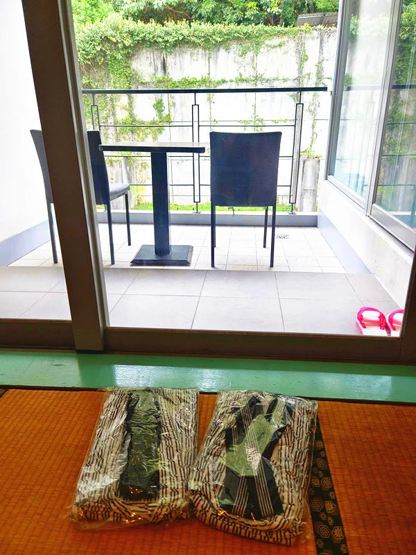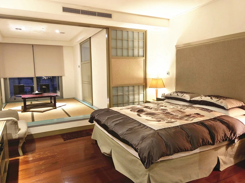 精緻和洋雙人房約有十七坪大,房內設有一張King Size大床與一間和室,泡完湯後可舒適地坐在榻榻米上休息。和室空間有六疊寬,旁邊連接通往湯屋的拉門,需注意門板無門把,須小心推開。該房型的陽台則面向牆壁,若想欣賞山景,可選擇房型較便宜但無榻榻米的精緻雙人客房。房內設施包含床對面的電視、入門左手邊的小冰箱以及衣櫥內的全身鏡。