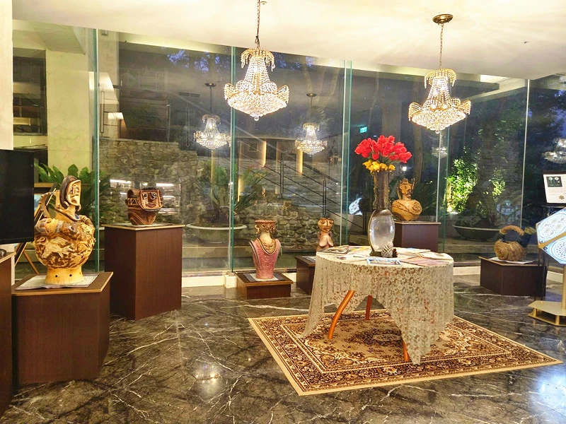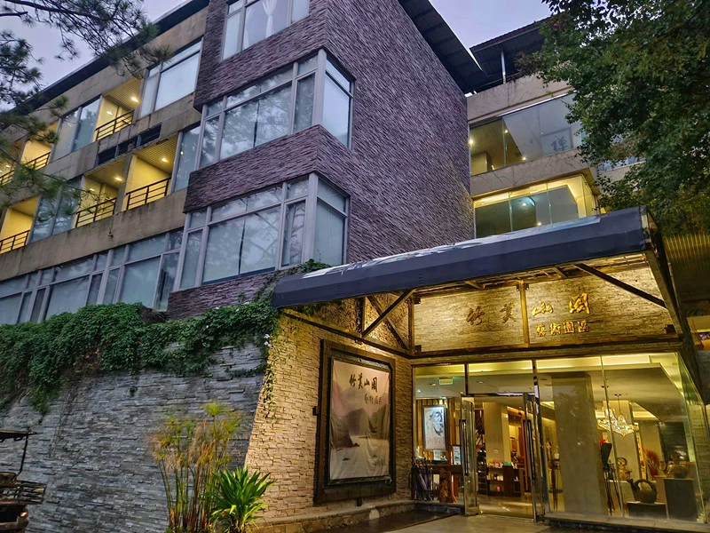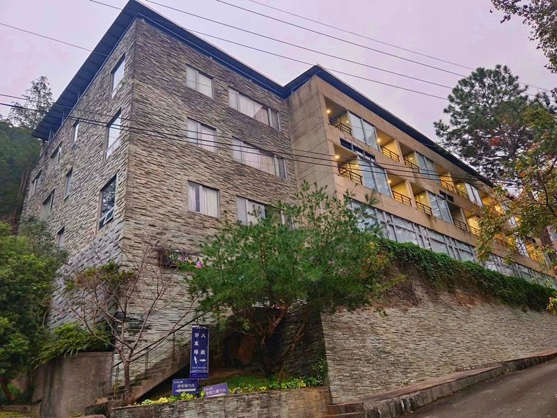 竹美山閣依山而建的四層樓建築,招牌上清楚標示為「竹美山閣藝術園區」,彰顯其不凡的藝術氛圍。一踏入大廳,便能立刻感受到濃厚的藝術氣息,內部裝潢品味獨特,隨處可見珍貴的藝術品擺設。入住手續簡潔,工作人員簡單告知注意事項後,便可搭乘電梯進入客房。會館特色之一是不設大眾風呂,僅提供湯屋泡湯服務,平日客房泡湯價格為新台幣二千二百元,假日為二千六百元,每次可使用二小時。