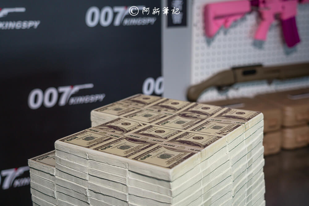而且金特務007超懂大家愛拍照的心!館內有超多打卡牆,還貼心準備了帽子、手槍、長槍,甚至還有超大疊的現鈔等道具,讓你盡情發揮創意,拍出獨一無二的回憶照片!