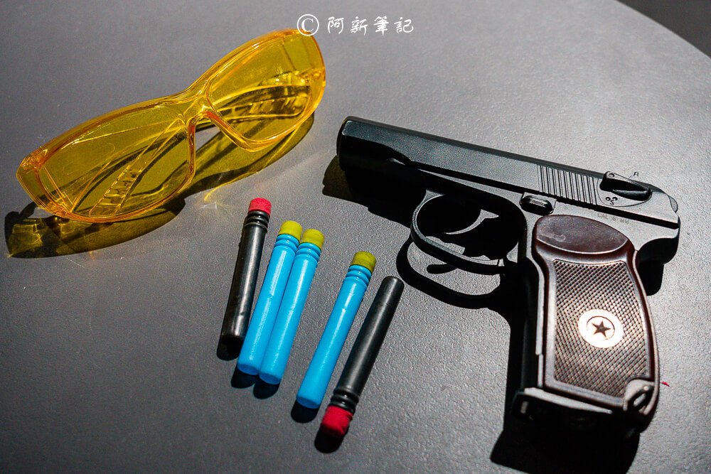 接著來到「輕兵器訓練場」,這裡有安全度很高的CO2氣槍和塑膠子彈,大人小孩都能一起體驗手槍射擊,現場還有專業解說人員教你正確姿勢,讓你帥氣滿分!