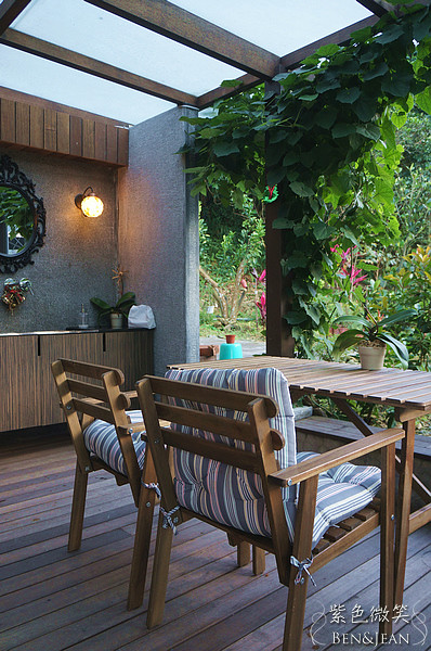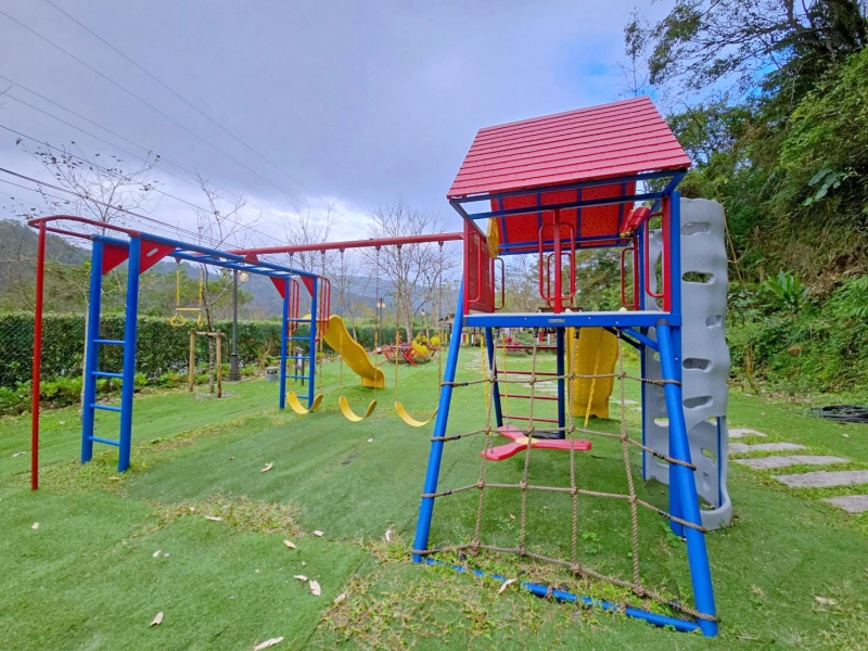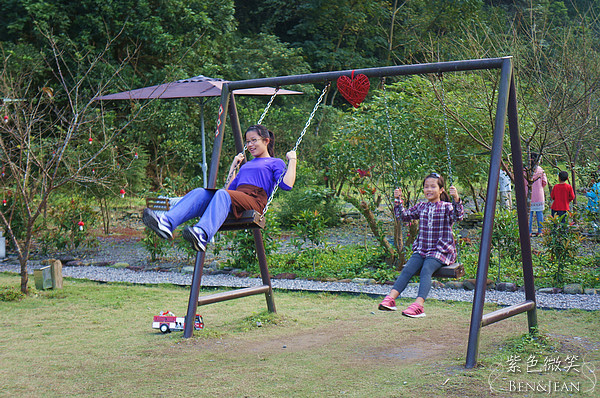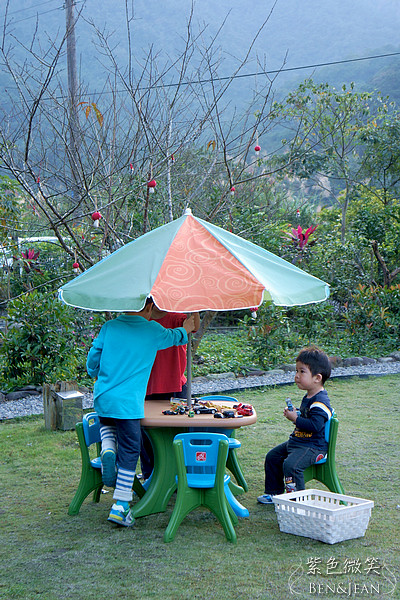 這裡還有小朋友最愛的遊樂設施,戶外兒童遊戲區可以讓孩子們盡情放電,討人喜歡的挖沙池也準備完善,加上許多適合拍照的美拍場景,戶外座位區也方便家長隨時照看孩子,讓人非常安心,旁邊還有非常受歡迎的小木屋住宿區,這裡最特別的是,咖啡廳竟是自己種植並烘焙咖啡豆,非常少見,許多客人會選擇在下午時分前來,靜靜地看著草地上的小朋友嬉戲,這正是老闆所追求的家庭式咖啡館氛圍,咖啡廳的主體是一棟老平房改建的,新加蓋的屋簷下也擺放了多組桌椅,讓客人能悠閒欣賞大自然,同時方便家長看顧小朋友,看到孩子們的笑容,一切都值得了,小貝果一進來就立刻衝向滿桌的小車車,小主人還大方地分享玩具,陪著小貝果玩了快二小時,躺椅區域也非常受歡迎。
