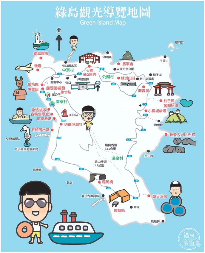 ▲網路上分享的綠島觀光地圖,將綠島主要景點都標示的很清楚啦!