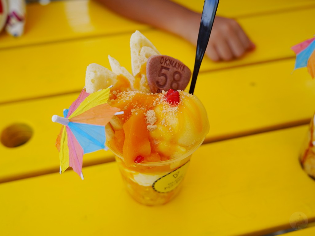 瀨長島上的店家其實也不少,像是咖啡廳、冰店、小吃店一整排,走著走著就會忍不住想停下來逛逛。我們去的時候天氣真的超熱,很多人都坐在有遮陽的露天座位吃冰、喝飲料,吹著海風超舒服~就算不特別吃正餐,來這裡點杯飲料、看海景放空一下,也是一種很享受的旅行方式!