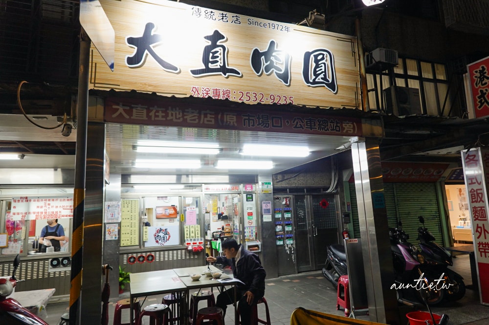 這間開業於1972年的大直肉圓,就位在捷運大直站1號出口附近,走路不用3分鐘就能抵達,地點超方便。店裡除了招牌大直肉圓,還有麵線、羹湯、綜合羹等豐富選項。傍晚時分經過大直肉圓門口,常常會看到有人排隊外帶,可見大直肉圓的人氣真的很旺。這間大直肉圓的營業時間是星期一到星期六的早上11點到晚上8點,星期日休息,網友給了它3.9顆星的高評價,是許多人來大直不能錯過的大直美食。