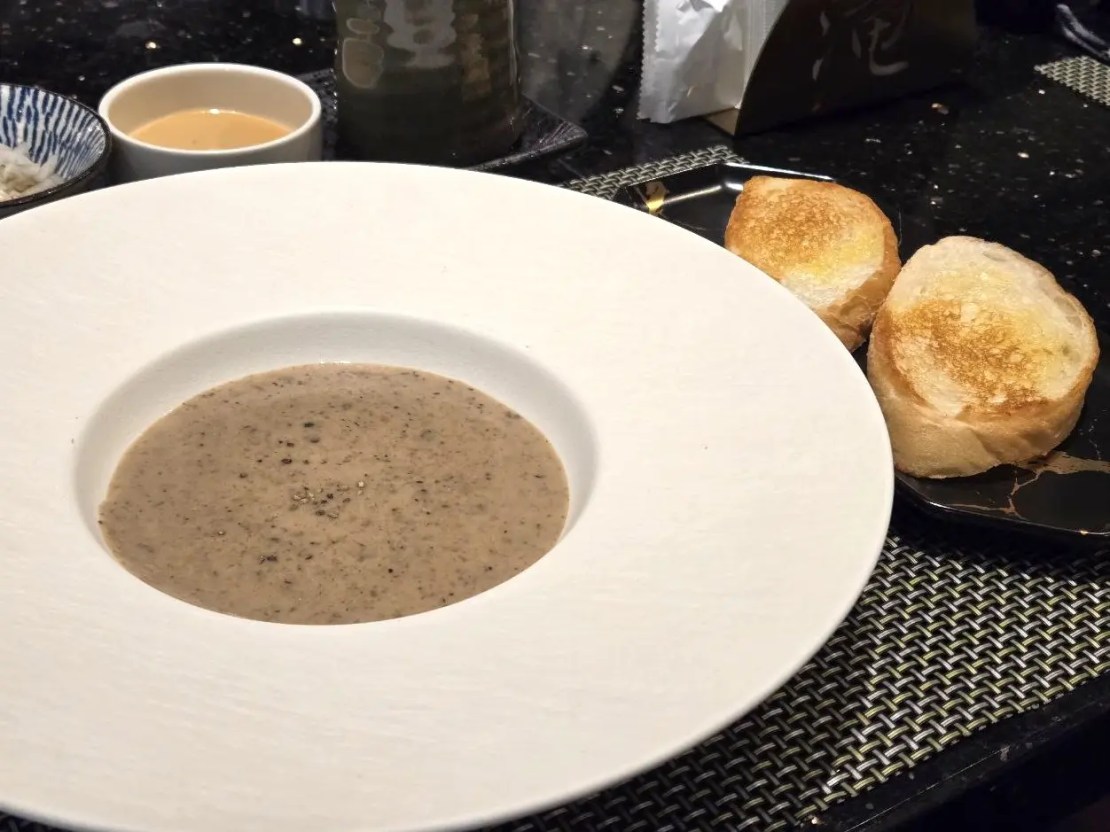 牛肝菌菇濃湯一上桌就香氣撲鼻,湯底濃郁卻不膩口,喝起來有種森林的氣息。牛肝菌的香氣與奶油湯底完美融合,入口滑順,尾韻還帶點菇類的自然甘甜。這道湯品不僅暖胃,也讓人感受到食材的質感與層次,是套餐中不可忽略的靜謐之作。