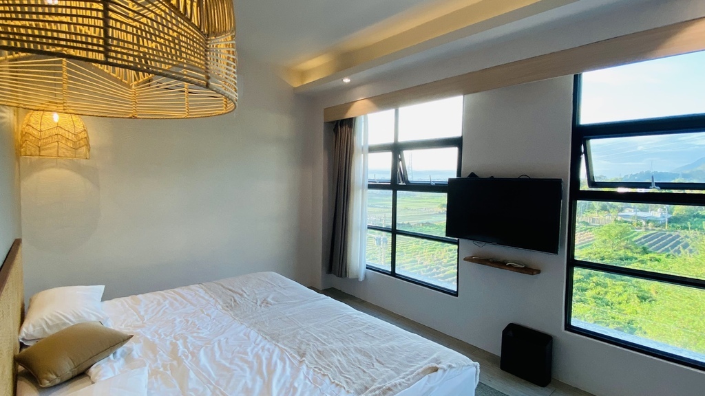 花蓮吉安住宿【花蓮熊頂民宿】躺在床上看日出/整片窗戶山景房/加大雙人床/頂樓超美觀景台/花蓮CP值高民宿