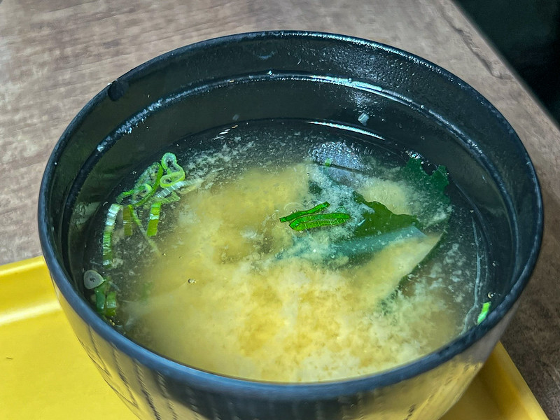 以本次用餐點選的「腰內肉定食」為例,選擇腰內肉的理由是其肉質較為鬆軟。這份定食附有生菜、小菜、味噌湯和白飯。雖然當天小菜是豆芽,可能不合乎所有人口味,味噌湯表現中規中矩,米飯則屬一般且撒有芝麻。