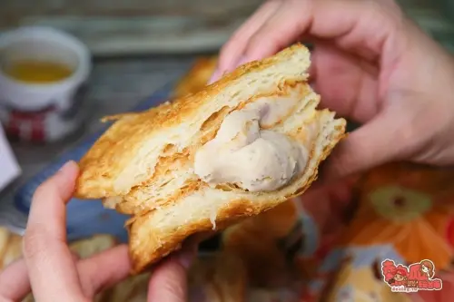掌糕點蛋黃酥,分別有烏豆沙、綠豆餡、芋頭餡三種口味,平日也有少量製作,如果愛這類傳統糕餅,又不想吃多,買給幾顆自己開心,真的很讚!