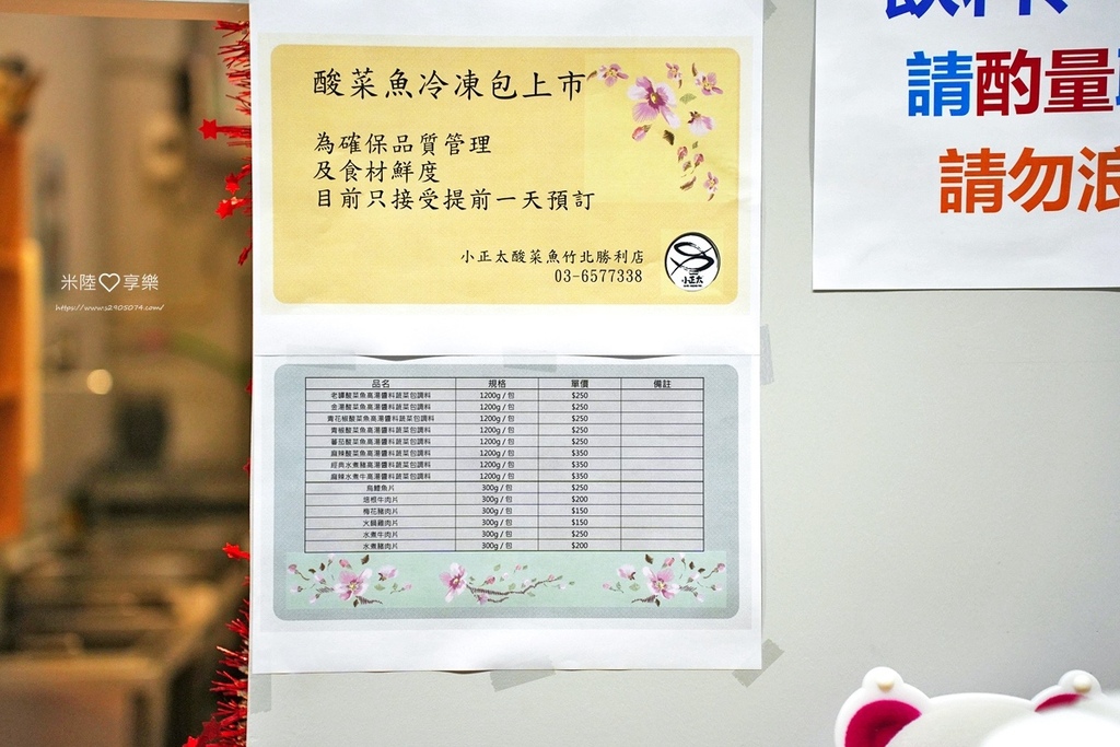 說到停車,來小正太酸菜魚竹北勝利店很方便,你可以把車停在竹北伍福宮旁邊的勝利二路公有停車場,或者餐廳對面的勝利三停車場,停車不用煩惱。一進門,門口就有貼心提醒大家,這裡不能帶外食,餐具要自助回收,點餐也是用點餐機自助點餐喔。店裡空間雖然不大,一眼就能看到底,大約有十張兩人座的桌子,最棒的是這些桌椅可以機動性地調整,就算需要四人或六人座位也能輕鬆移動,達到最優化。牆上還貼有漂亮的食物照片,如果不知道要點什麼,可以參考看看。另外,點餐機旁邊有放實體菜單,這點真的要給店家一個讚,對於沒有手機的孩子或長輩來說,就不會全家都擠在點餐機前面看菜單了。這裡的白飯是自取,但菜單上有白飯選項是為了共鍋時加點用的,而店家低消是一人一鍋喔。