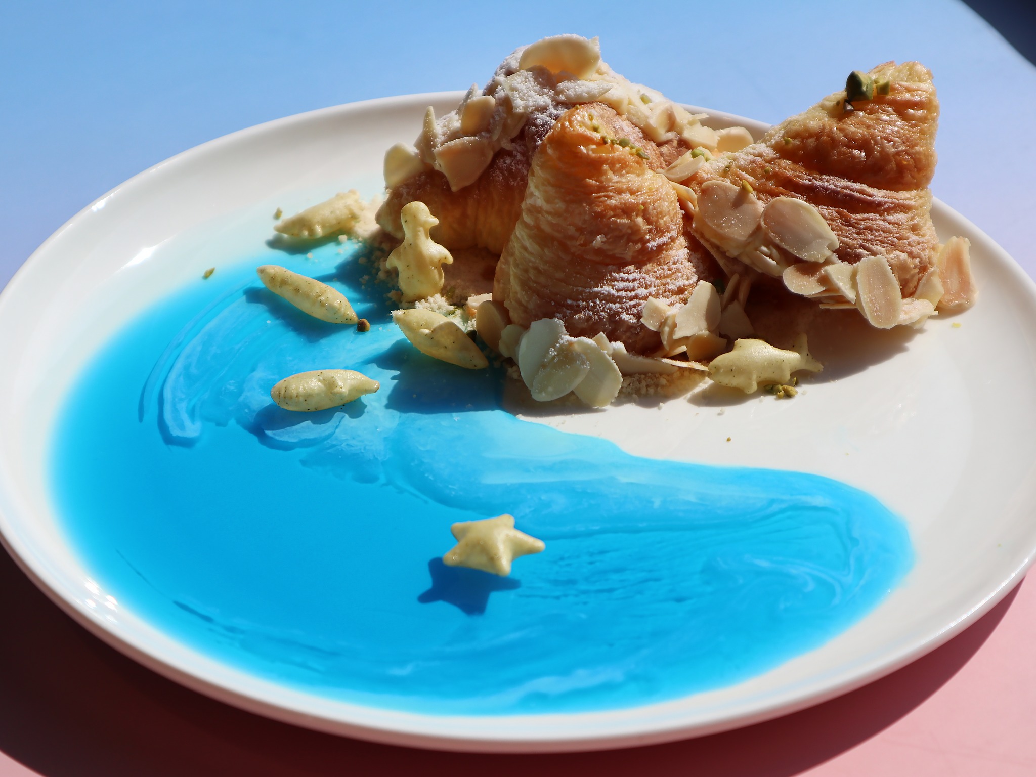 除了館內豐富展區外,海洋館的開幕也帶動台中業者推出響應活動。台中萬楓酒店自8/21至9/25於楓橋餐廳推出限定「海洋靜謐」下午茶組,凡出示海洋館電子票券或打卡畫面,即可享有七折優惠。甜點設計巧妙融入海洋意象,像是鬆軟的「珊瑚可頌」宛如浪花間的珊瑚礁,手工製作的「港灣茶餅」則彷彿漫步沙灘,讓人同時感受視覺與味覺的驚喜。參觀完海洋館,不妨再安排到萬楓享受一場療癒午茶,為一日行程增添優雅收尾。