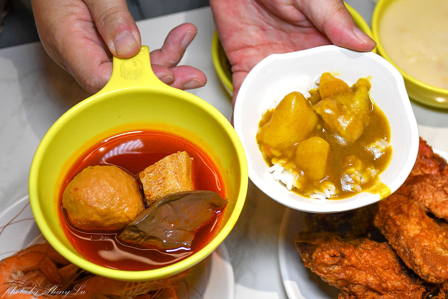 熱菜的部份十多種,有魚下巴、油飯、炒麵、糖醋排骨、炸物類、燒賣…等超多選項,滷白菜、麻辣鴨血,四神湯、滷豬腳,還可以diy滷肉飯、咖哩飯…