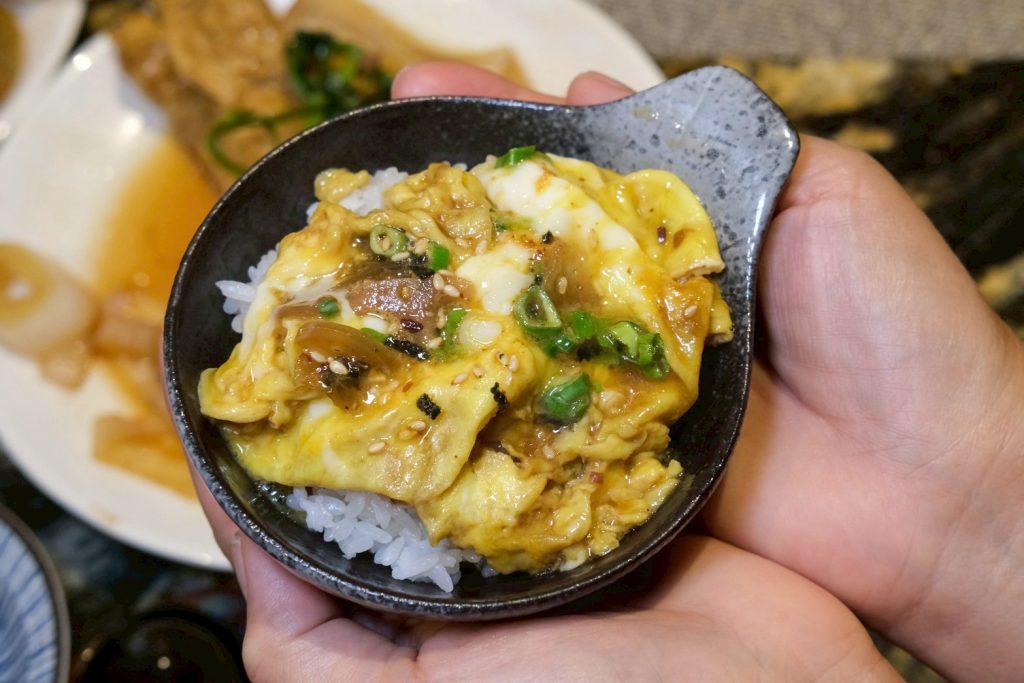 吃完肉片後,還有超有趣的蛋飯吃法,將剩下的壽喜燒醬汁加入蛋花、福神漬、蔥花、海苔等食材,料理成壽喜燒版的雜炊,鹹甜鹹甜的味道非常討喜。飲品部分則大推木柵鐵觀音和日本頂級抹茶,木柵鐵觀音茶香淡雅,很有去油解膩的效果,擺盤也很漂亮;日本頂級抹茶沒有加糖,是很正宗的口味,不會有苦澀感入喉還會回甘。