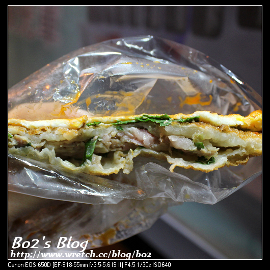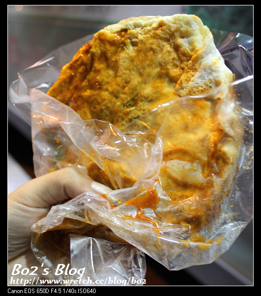 抓餅內還有蔥跟九層塔,我還加了蛋,不過它的蛋是全熟薄蛋,