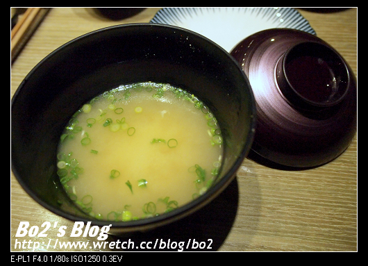 味噌湯有濃濃的昆布鮮味,滋味濃郁,用料也挺豐富的。
