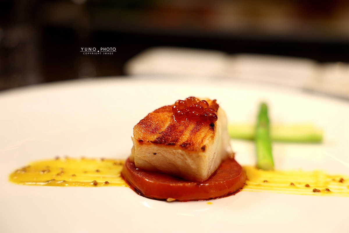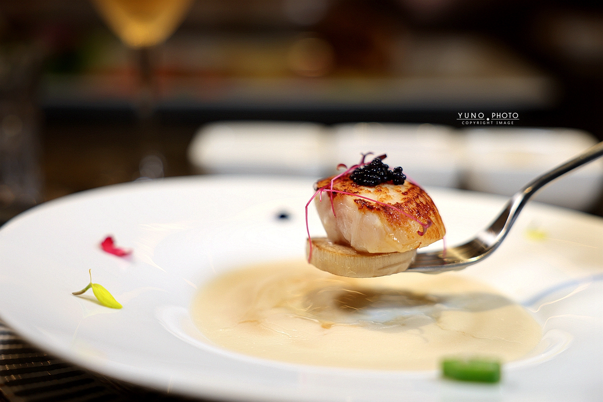選用鮮甜肥美的大干貝 外層香煎至金黃酥脆 鎖住內裡細膩的鮮嫩口感 頂端點綴奢華魚子醬 帶來海洋的鹹香與層次感