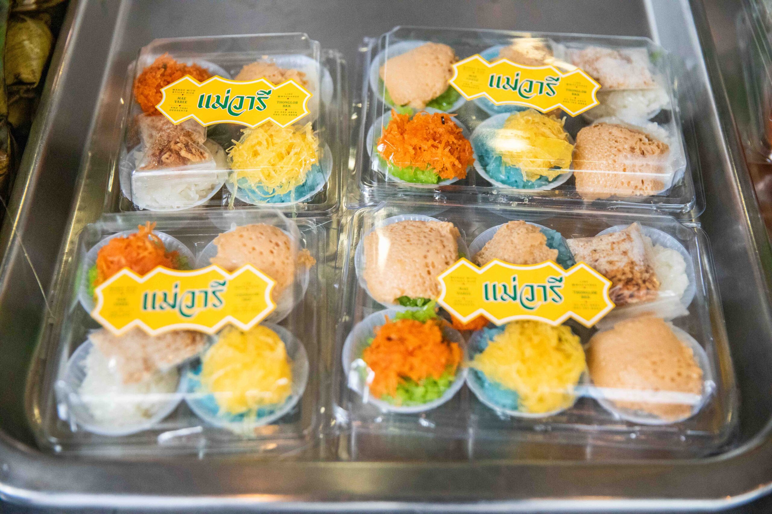 號稱曼谷最好吃三色芒果糯米飯!Mae Varee芒果糯米飯這裡現切的大顆芒果超級多汁,搭配繽紛的三色糯米飯,光看就覺得很好吃。如果你在曼谷想找品質好又穩定的芒果糯米飯,通羅站旁的這家Mae Varee芒果糯米飯長期都穩居泰國芒果糯米飯的搜尋榜首,曼谷很多地方都有賣,但通常不是芒果太酸就是糯米不夠Q,而Mae Varee芒果糯米飯在甜香上拿捏得剛剛好,糯米軟黏又有彈性,椰奶收尾也不會讓人覺得油膩,他們在網路上的好評將近三千則,真的是名不虛傳,不過,它的價位在曼谷芒果糯米飯中也算是數一數二的高價位喔。
