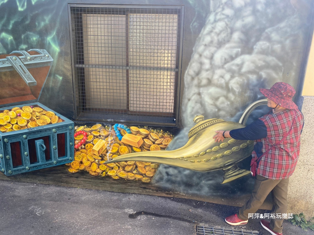 「九房童話世界3D彩繪村」阿拉丁神燈慢慢擦亮他將給于金銀財寶喔!