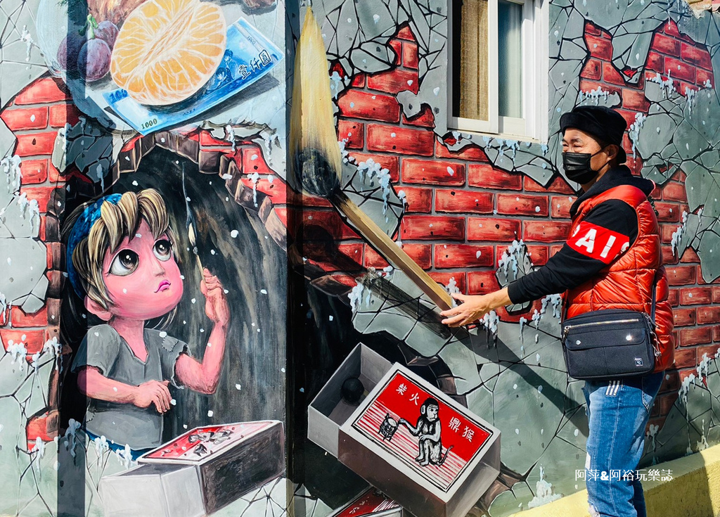 這個九房童話世界3D彩繪村基本上就是沿著一條路逛,逛起來其實蠻輕鬆舒服的。雖然彩繪村的範圍不算特別大,壁畫的幅數也不是非常多,不過這裡很棒的地方在於,它沒有用大家常見的卡通人物,而是特別選用經典的童話故事作為主題,並且巧妙地結合了當地代表性的景點。