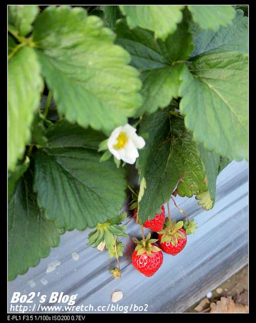 聽老闆說,草莓總共有四期,目前這是第二期花所產的草莓,(希望我的兩光腦沒記錯)