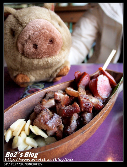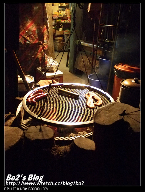 另一側架上傳來了陣陣烤肉及柴香,很有原始風貌。
