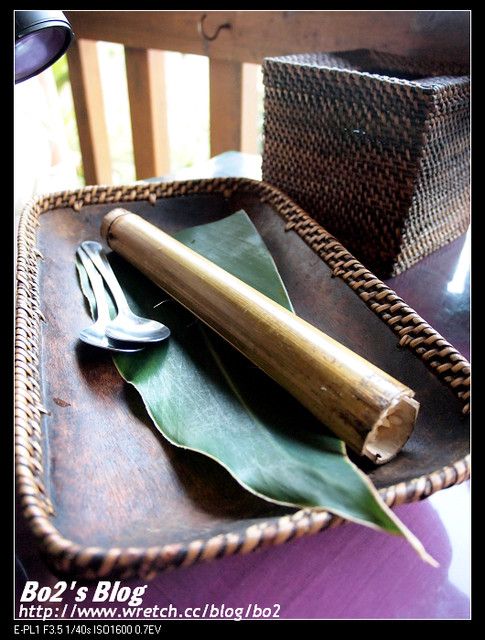 用竹筒炊煮的小米飯,有點黏稠,吃起來像糯米,很特別。