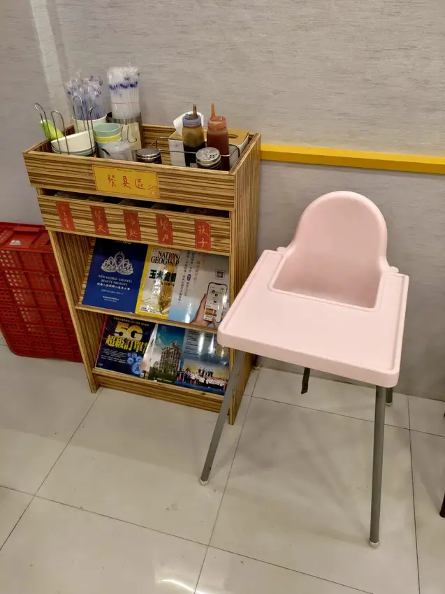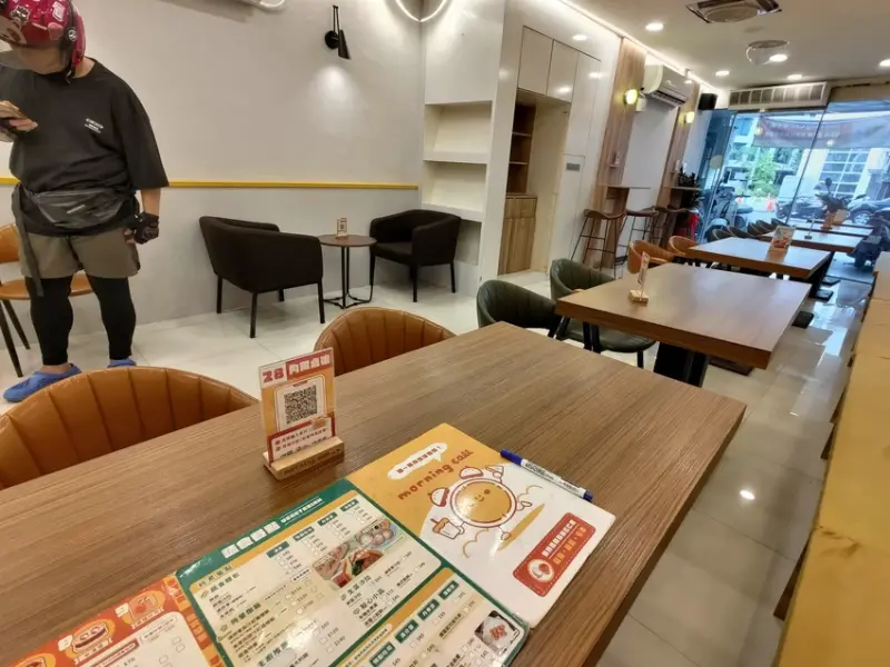 採半自助式,掃QR code或櫃檯點餐,櫃台取餐。餐具、醬料、書報雜誌也是採自助式。吃完以後回收餐盤到櫃子上。