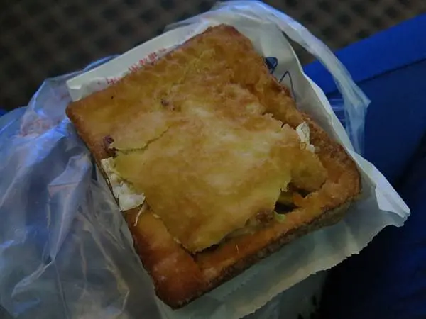 位於一中一街-水利大樓前,炸得金黃酥脆的吐司表皮,裡頭裝著濃郁、料多味美的食材,份量十足,已飽