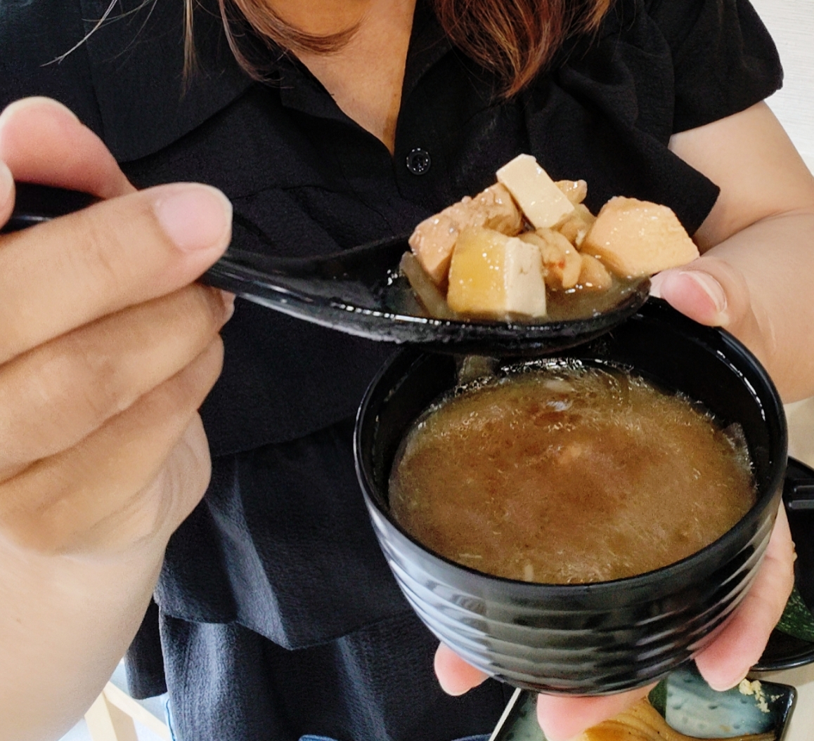 這碗味噌湯真的超有誠意。料給得滿滿,豆腐、魚肉一勺就能舀起整口的豐富感,湯頭濃郁卻不死鹹。