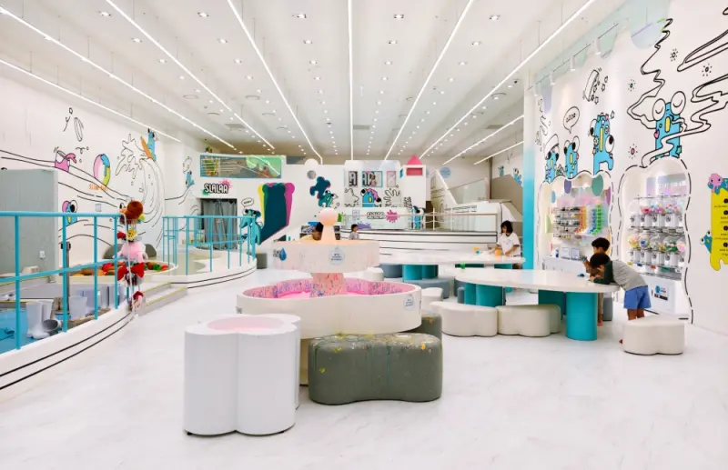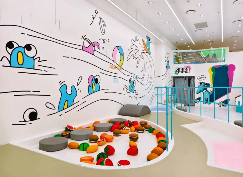 ▼韓國第一間以「史萊姆」為主題的樂園 — SLALAA 讓小朋友們可以盡情投入各種與史萊姆相關的互動設施,有:史萊姆製作區、史萊姆瀑布牆、角色互動區、藝術塗鴉牆、多層次遊戲空間,還有很有耐心的陪玩哥哥們陪小朋友玩。