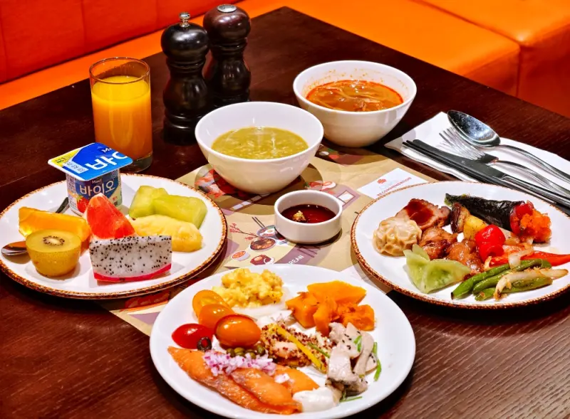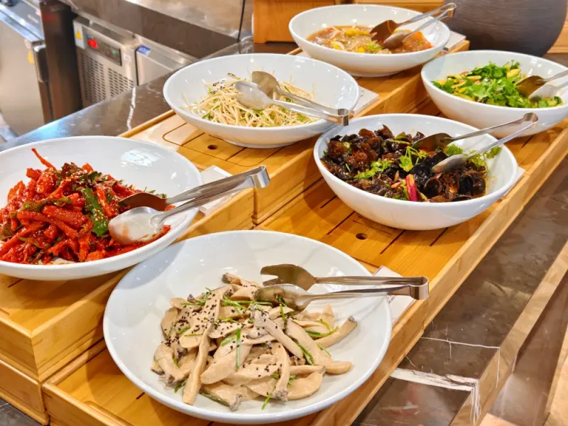 ▼我很喜歡大廚自助餐廳的早餐,有西式、韓式、中式與日式料理,種類豐富,原型食物比重高,韓式料理一定要試試,囊括了韓式經典美食,非常好吃也不會太辣。韓式小菜有:泡菜、辣炒魚糕、蓮藕花生、泡菜炒時蔬、涼拌青菜。