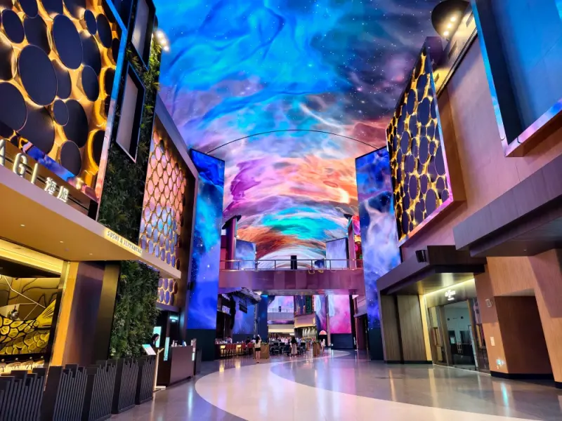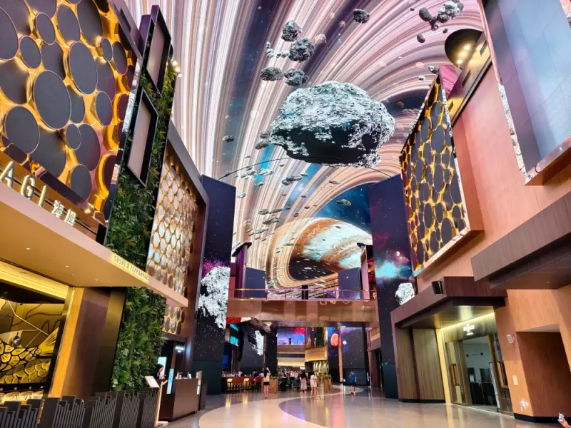 住過很多家澳門賭場飯店,迎仕柏度假城雖然也是走賭場飯店路線,但是綜合性設計概念,納入豪華住宿、娛樂、賭場與數位沉浸空間的統整規劃,整體設計兼具山河自然景觀與建築美學,有幾處「迎仕柏奇觀」都是值得去探尋的打卡點。