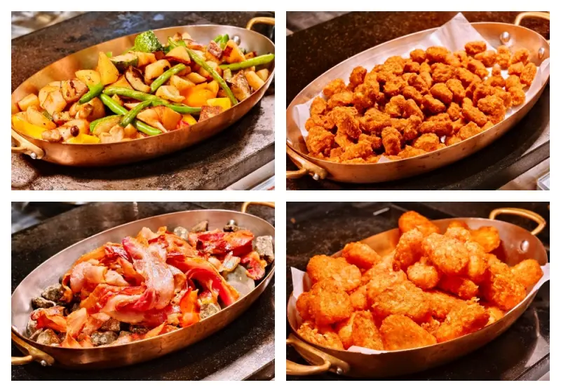 ▼比較偏向西式的熱食區有烤蔬菜、炸雞塊、培根、薯餅。