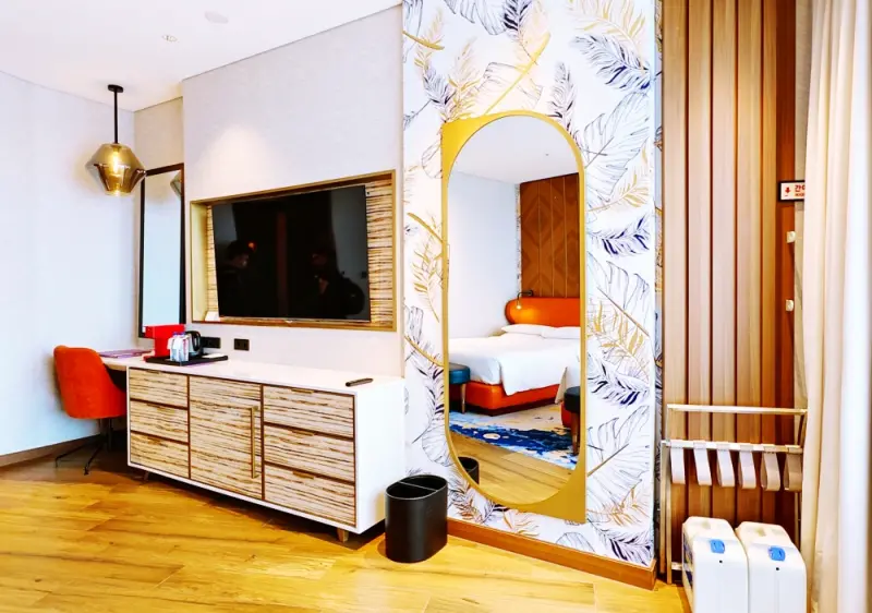 ▼客房配有書桌,也可以當梳妝鏡,還有全身鏡與完善收納。