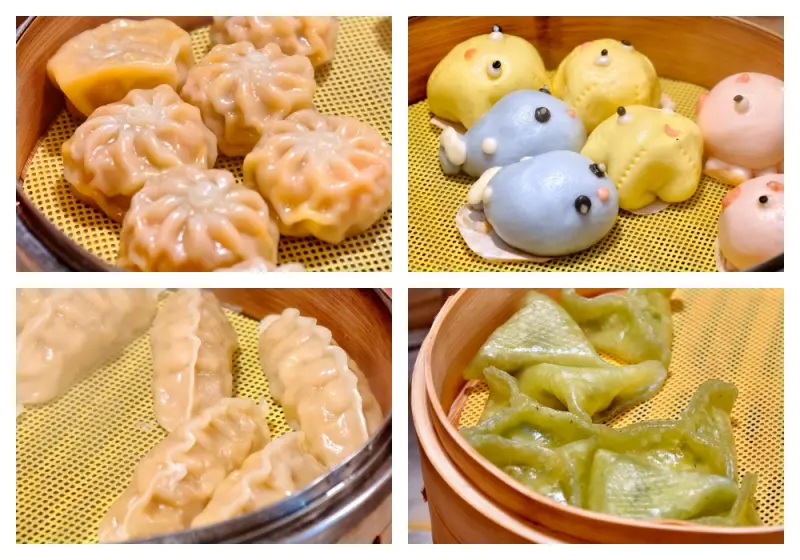 ▼點心蒸籠區有小籠包、餃子、卡通造型包子、菠菜水晶餃。