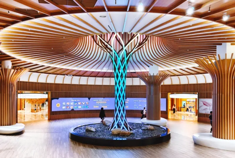 環形大堂也是演唱會場館 INSPIRE ARENA 的售票處,若是遇到活動期間,現場還會有藝人周邊商品販售、快閃展覽等限定活動,貢茶、大廚自助餐廳、CU 便利商店也都集中在環形大堂四周。
