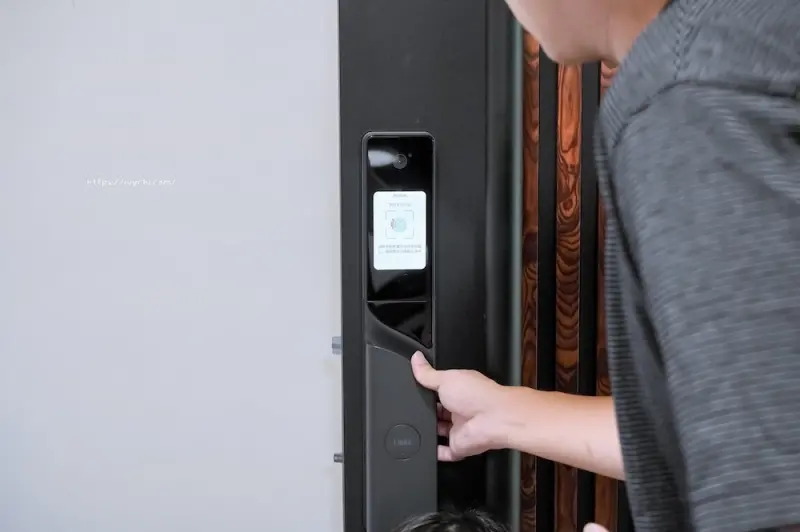 此外,這款電子鎖還有防夾手設計,在推拉鎖具上和傳統把手的門鎖不一樣,只需用手掌就能推拉開門,這樣的設計對有小孩的家庭來說非常安全。
