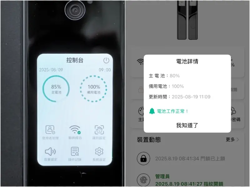 - 安全鎖定機制與警報功能:我們家是沒有管理員的社區透天,住家大門是對外,需要有防盜監控功能。