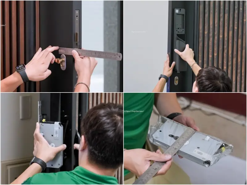 雖然琺博電子鎖適用於大多數的門,但在安裝前師傅還是很細心的重複確認各個尺寸,減少安裝中碰到尺寸無法安裝的問題,在旁邊看的我覺得很安心。