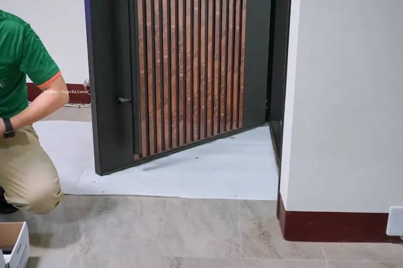 安裝前師傅會在門底下鋪上保護墊,保護家裡磁磚或是木頭地板,也避免髒污直接掉落,這點真的很貼心。