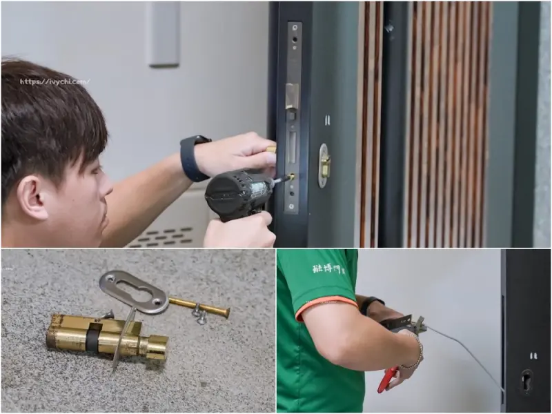 說到我家那扇舊門鎖,孔位尺寸跟市面上常見的規格完全不一樣,師傅需要DIY裁切鐵件、擴大門孔,聽到要裁切讓我心裡有點忐忑,但師傅每一個步驟都非常仔細,慢慢地調整,讓我看得很安心。