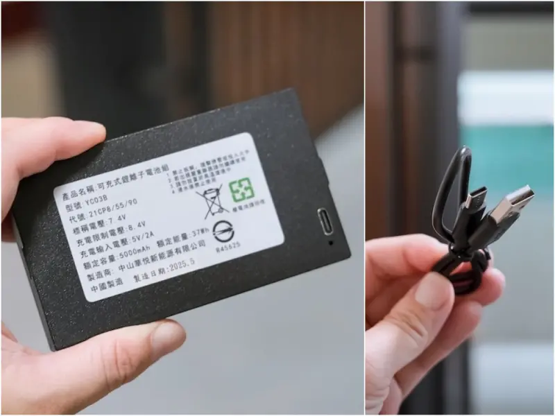 大部分電子鎖都設有應急電源孔,通常是9V電池,琺博FB90築韻電子鎖不一樣,直接提供一顆備用電池,只要沒電拔下來用充電線充電就行,拔下來期間主機本身還是有電量的,開關門還是可以的!