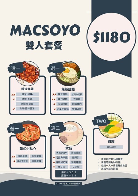 築夢韓食店裡還有一個大螢幕,會一直播放著韓國流行音樂,整體氣氛非常輕鬆,完全不會覺得太吵雜。這種舒適的環境,很適合三五好友一起來聚餐。這裡的菜單看起來每一項餐點都好誘人,讓人忍不住想多點幾道。如果能用美味的餐點搭配著韓式風味的飲品,那肯定會讓用餐的心情變得更美好。築夢韓食除了提供單點的選項,也有貼心準備了二人跟四人的套餐,讓大家選擇更多元。入座之後,服務人員會先送上小菜,而且這些小菜是無限供應的,真的非常大方。