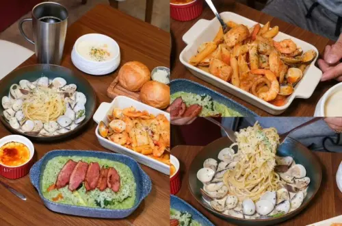 牛肉義大利麵是先用白酒熬煮蔬菜,再加入紅酒燉煮牛肉,麵條Q香,它不會輸給一些台北知名店家,特別是牛肉非常軟嫩,麵條也選得很好,個人非常喜歡。接著是椒香辣味蛤蜊義大利麵,這個品項在義大利麵店很常見,台灣因為海鮮品質好,很常使用蛤蜊。這道麵帶點微辣,很香,老闆說有加一點老乾媽辣椒,但其實吃不太出來那個味道,麵條硬度也是我喜歡的。這道菜也相當美味。